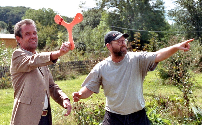 - Oder ich habe z.B. schon einmal bei einer Spendenaktion 5 Minuten lang einen Bumerang um den früheren Bürgermeister von Düren (Josef Vosen) herum gerworfen, wobei jeder Fang einen kleinen Betrag für die Spendenaktion einbrachte.