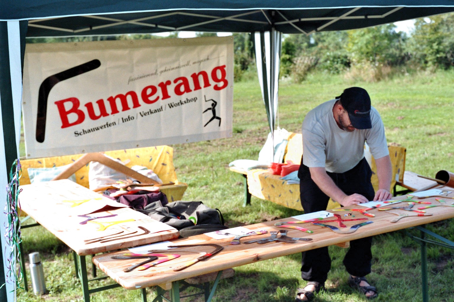 Dabei wird das Bumerangwerfen erklärt und gezeigt, werden die verschiedenen Arten der Bumerangs vorgeführt, die Disziplinen des Bumerangsports erklärt und einige geschichtliche und kulturelle Hintergründe vermittelt. Auf Wunsch können hinterher Gäste oder Zuschauer unter Anleitung selbst das Bumerangwerfen probieren. |